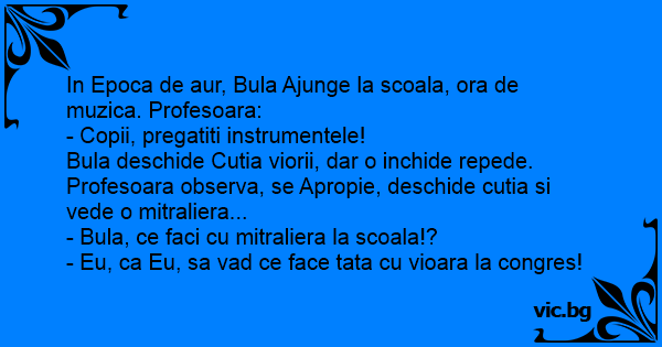 - Bula, ce faci cu mitraliera la scoala!?