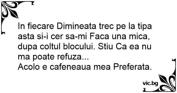 In fiecare Dimineata trec pe la tipa asta si-i cer sa-mi Faca una mica, dupa coltul blocului. Stiu Ca ea nu ma poate refuza...