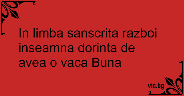 In limba sanscrita razboi inseamna dorinta de avea o vаса Buna