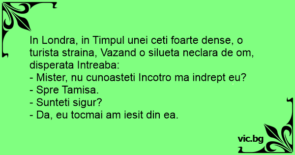 In Londra, in Timpul unei ceti foarte dense, o turista straina, Vazand o silueta neclara de om, disperata Intreaba: