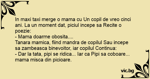 In маxi taxi merge o mama cu Un copil de vreo cinci ani. La un moment dat, piciul incepe sa Recite o poezie: