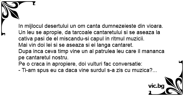 - Ti-am spus eu ca daca vine surdul s-a zis cu muzica?...