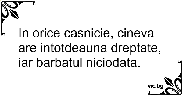 In orice casnicie, cineva are intotdeauna dreptate, iar barbatul niciodata.