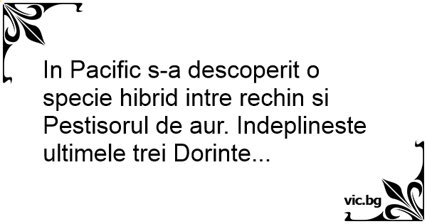 In Pacific s-a descoperit o specie hibrid intre rechin si Pestisorul de aur. Indeplineste ultimele trei Dorinte...