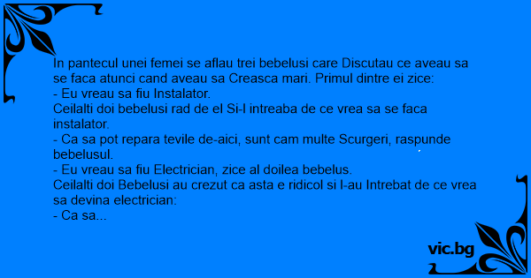 - Eu vreau sa fiu Electrician, zice al doilea bebelus.