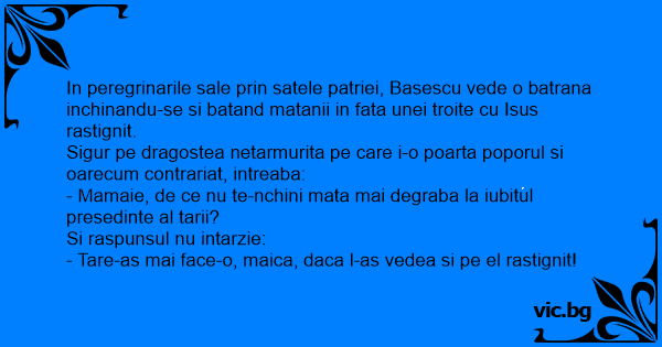 - Mamaie, de ce nu te-nchini mata mai degraba la iubitul presedinte al tarii?