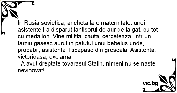 - A avut dreptate tovarasul Stalin, nimeni nu se naste nevinovat!