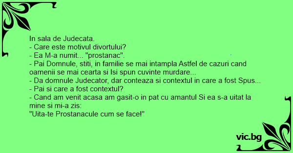 - Cand am venit acasa am gasit-o in pat cu amantul Si ea s-a uitat la mine si mi-a zis: