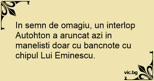 In semn de omagiu, un interlop Autohton a aruncat azi in manelisti doar cu bancnote cu chipul Lui Eminescu.