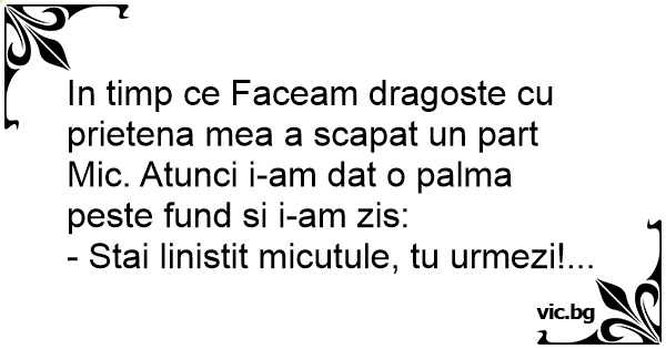 In timp ce Faceam dragoste cu prietena mea a scapat un part Mic. Atunci i-am dat o palma peste fund si i-am zis: