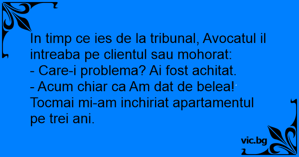 In timp ce ies de la tribunal, Avocatul il intreaba pe clientul sau mohorat: