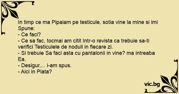 In timp ce ma Pipaiam pe testicule, sotia vine la mine si imi Spune: