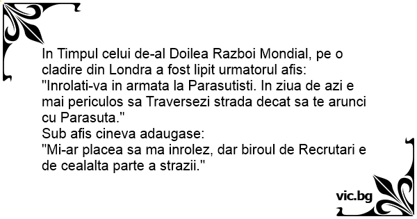 "Inrolati-va in armata la Parasutisti. In ziua de azi e mai periculos sa Traversezi strada decat sa te arunci cu Parasuta."