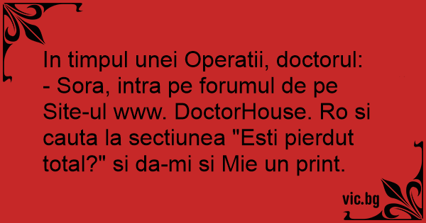 - Sora, intra pe forumul de pe Site-ul www. DoctorHouse. Ro si cauta la sectiunea "Еsтi pierdut total?" si da-mi si Mie un print.