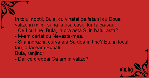 - Si a indraznit curva aia Sa dea in tine? Eu, in locul tau, o faceam Bucati!