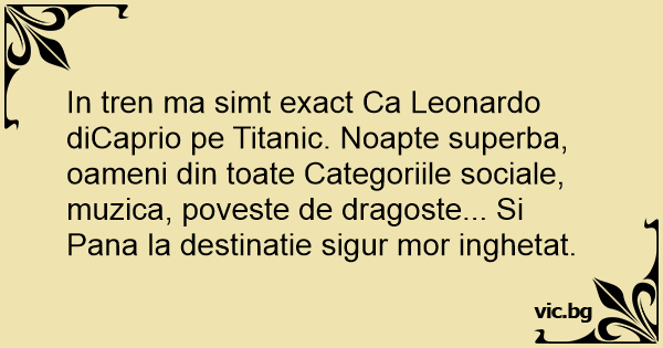 In tren ma simt exact Ca Leonardo diCaprio pe Titanic. Noapte superba, oameni din toate Categoriile sociale, muzica, poveste de dragoste... Si Pana la destinatie sigur mor inghetat.