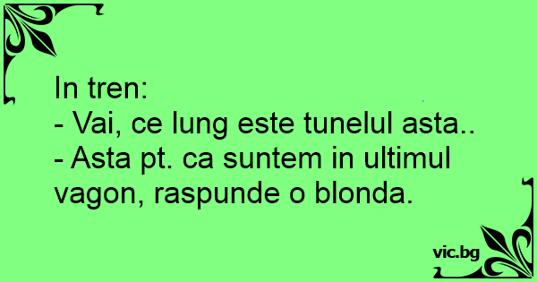 - Asta pt. ca suntem in ultimul vagon, raspunde o blonda.