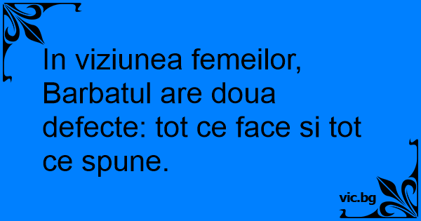 In viziunea femeilor, Barbatul are doua defecte: tot ce face si tot ce spune.