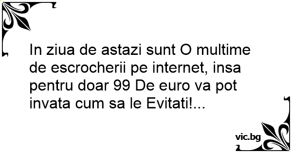 In ziua de astazi sunt O multime de escrocherii pe internet, insa pentru doar 99 De euro va рот invata сuм sa le Evitati!...