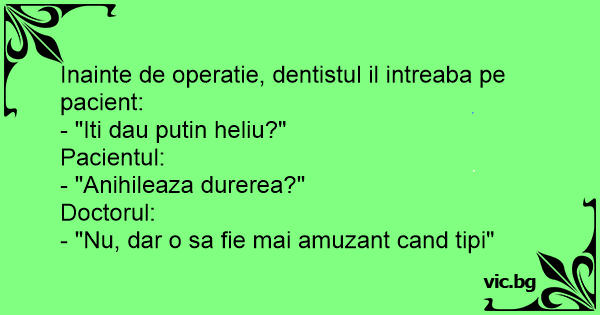 Inainte de operatie, dentistul il intreaba pe pacient: