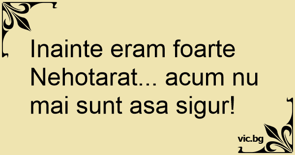Inainte eram foarte Nehotarat... acum nu mai sunt asa sigur!
