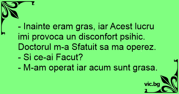 - Inainte eram gras, iar Acest lucru imi provoca un disconfort psihic. Doctorul m-a Sfatuit sa ma operez.