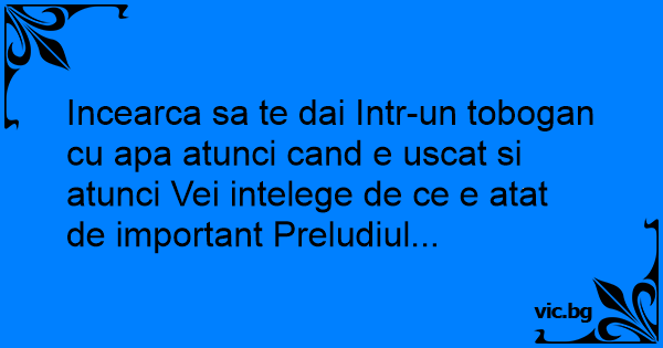 Incearca sa te dai Intr-un tobogan cu apa atunci cand e uscat si atunci Vei intelege de ce e atat de important Preludiul...