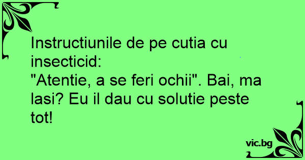 "Atentie, a se feri ochii". Bai, ma lasi? Eu il dau cu solutie peste tot!