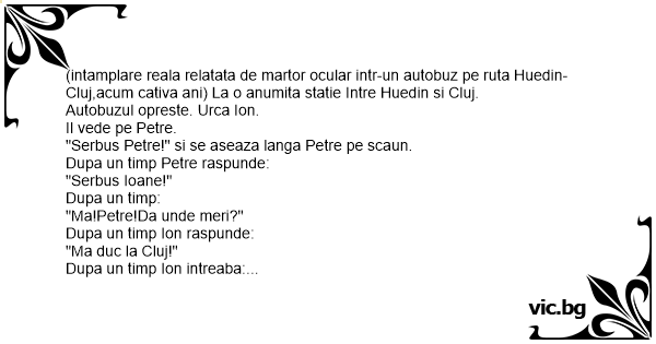 (intamplare reala relatata de martor ocular intr-un autobuz pe ruta Huedin-Cluj,acum cativa ani) La o anumita statie Intre Huedin si Cluj.