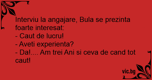 Interviu la angajare, Bula...