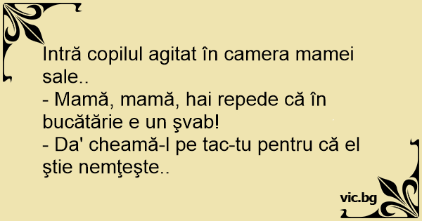 - Mamă, mamă, hai repede că în bucătărie e un şvab!