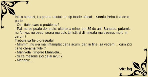 Intr-o buna zi, La poarta raiului, un tip foarte ofticat... Sfantu Petru Il ia de-o parte:
