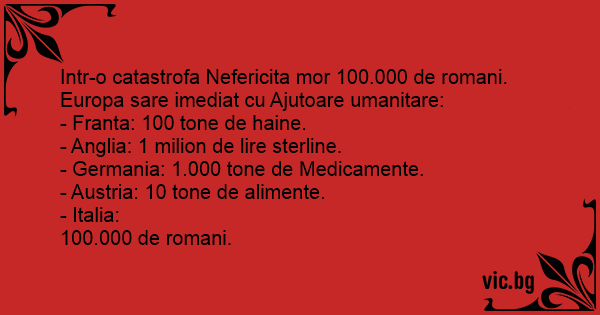 Intr-o catastrofa Nefericita mor 100.000 de romani. Europa sare imediat cu Ajutoare umanitare: