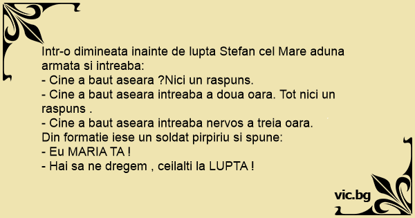 Intr-o dimineata inainte de lupta Stefan cel Mare aduna armata si intreaba: