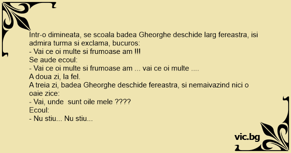A treia zi, badea Gheorghe deschide fereastra, si nemaivazind nici o oaie zice:
