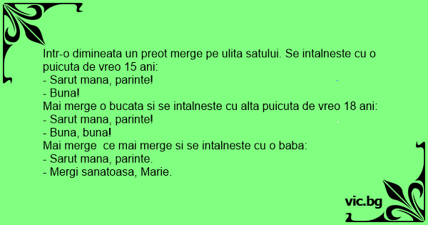 Intr-o dimineata un preot merge pe ulita satului. Se intalneste cu o puicuta de vreo 15 ani: