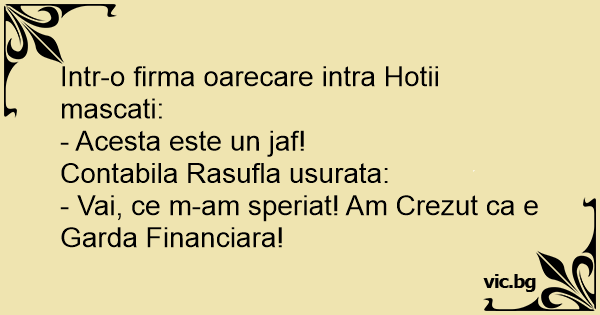 - Vai, ce m-am speriat! Am Crezut ca e Garda Financiara!