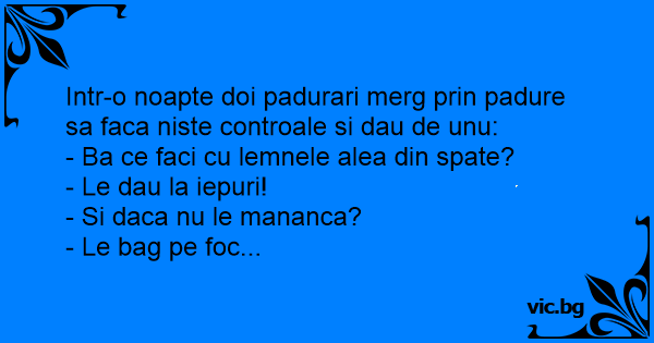Intr-o noapte doi padurari merg prin padure sa faca niste controale si dau de unu: