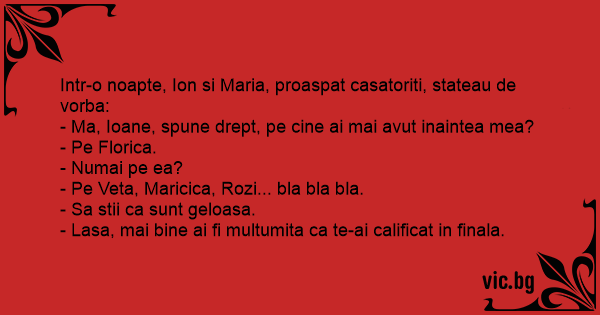 Intr-o noapte, Ion si Maria, proaspat casatoriti, stateau de vorba: