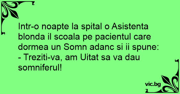 Intr-o noapte la spital o Asistenta blonda il scoala pe pacientul care dormea un Somn adanc si ii spune: