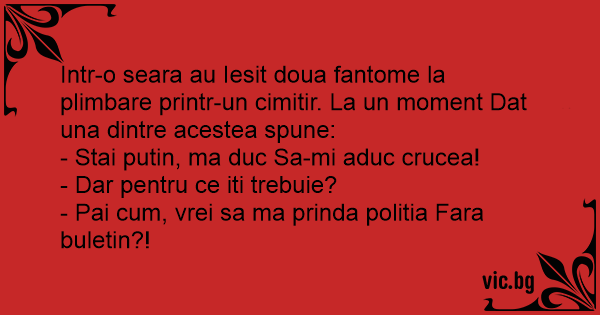 Intr-o seara au Iesit doua fantome la plimbare printr-un cimitir. La un moment Dat una dintre acestea spune: