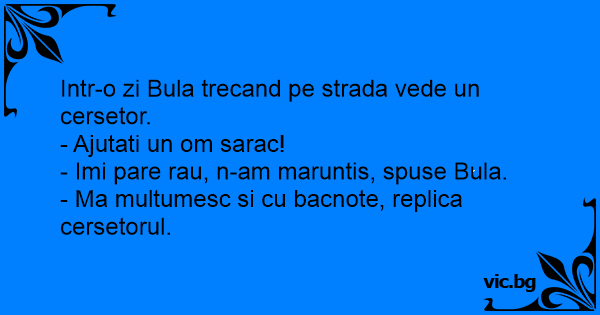 Intr-o zi Bula trecand pe strada vede un cersetor.