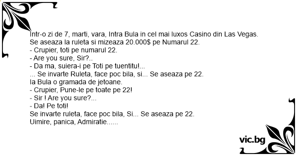 Intr-o zi de 7, marti, vara, Intra Bula in cel mai luxos Casino din Las Vegas.
