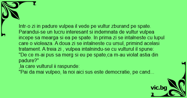 "Pai da mai vulpeo, la noi aici sus este democratie, pe cand acolo jos la voi e futaie multa."