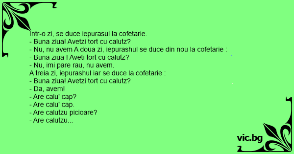 - Nu, nu avem A doua zi, iepurashul se duce din nou la cofetarie :
