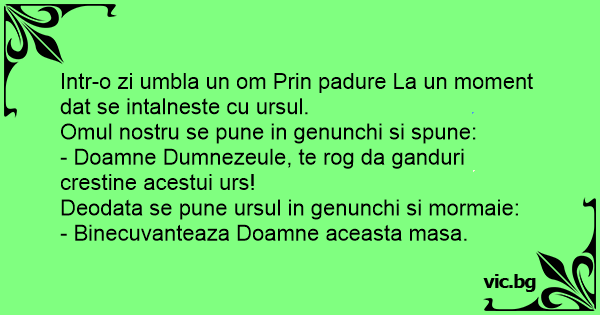 - Doamne Dumnezeule, te rog da ganduri crestine acestui urs!
