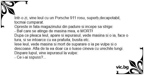 Intr-o zi, vine leul cu un Porsche 911 rosu, superb,decapotabil, tocmai cumparat.