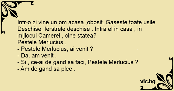 Intr-o zi vine un om acasa ,obosit. Gaseste toate usile Deschise, ferstrele deschise . Intra el in casa , in mijlocul Camerei , cine statea?