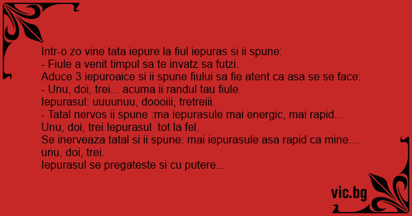 Se inerveaza tatal si ii spune: mai iepurasule asa rapid ca mine.... unu, doi, trei.