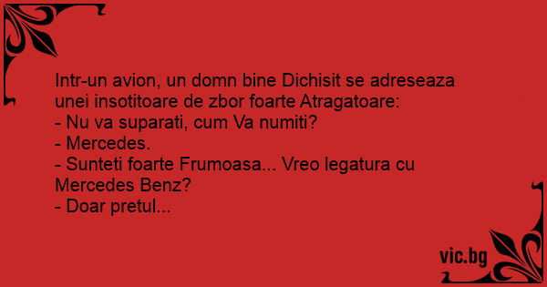 - Sunteti foarte Frumoasa... Vreo legatura cu Mercedes Benz?